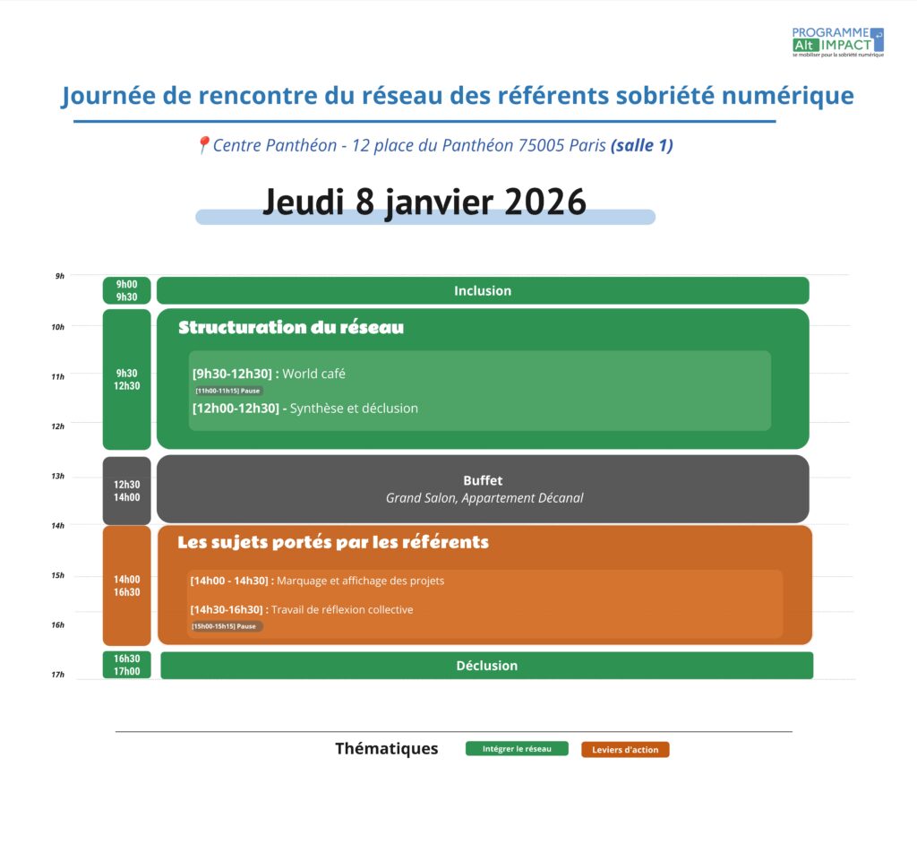 Après avoir initié le réseau en deux temps avec l’accompagnement d’Alt IMPACT, les référents sobriété numérique de l’ESR (promotion 1 & 2) lancent leur première assise le 8 janvier prochain à l’Université Paris 1 Panthéon-Sorbonne.